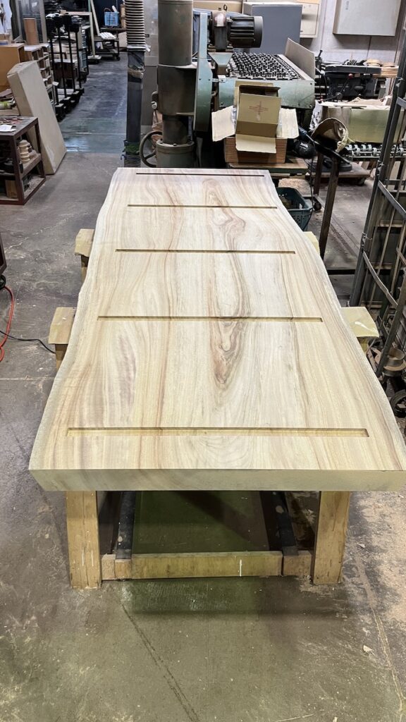 小田原産のクスを使って完成していた天板が、工場火災で燃えてしまいました。