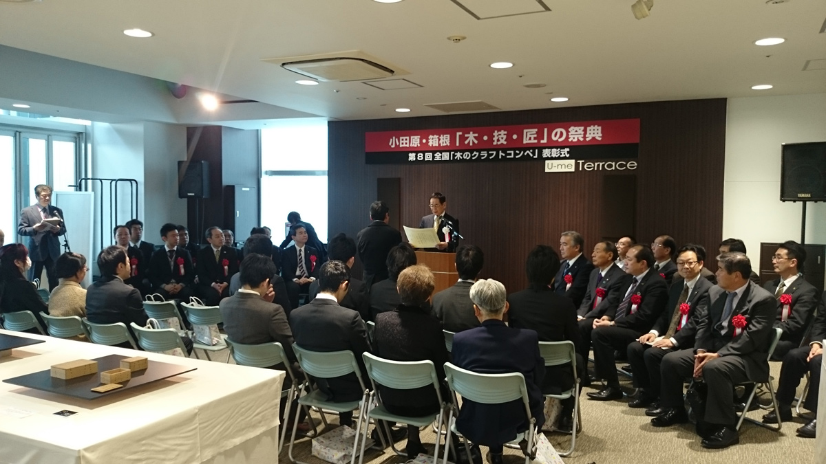 本日、木・技・匠の祭典にて木のクラフトコンペ授賞式がありました!ラ・ルースの職人さんのアイテムも奨励賞を受賞♪各パーツを一つに収納できるつくりになっています。うめまる広場では、食彩杢彩(しょくさいもくさい)フェスタで使用している器の紹介もされています。木工市も開催中!小田原を象徴する懐かしくてモダンなアイテムが勢ぞろいしています。是非お近くにお寄りの際は小田原駅地下、ハルネ小田原に足を伸ばしてください(^-^)/