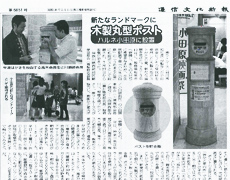 通信文化新報に木製丸型ポストが取り上げられました。