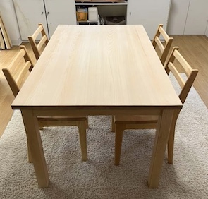 【家具】間伐材ヒノキのダイニングテーブル