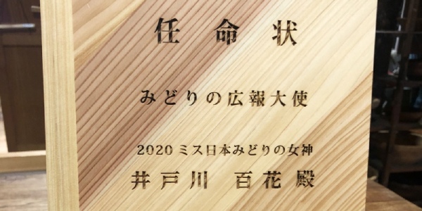 2020ミスみどりの広報大使盾作製