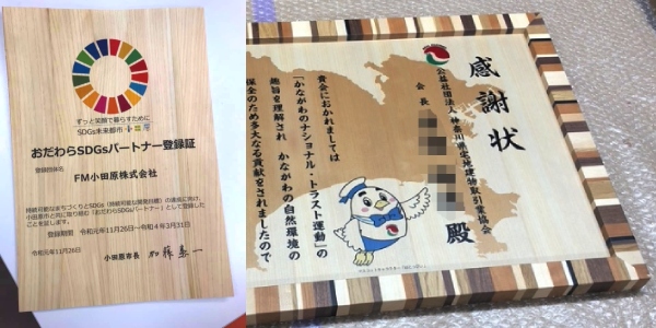 木の感謝状・おだわらSDGsパートナー登録証の作製
