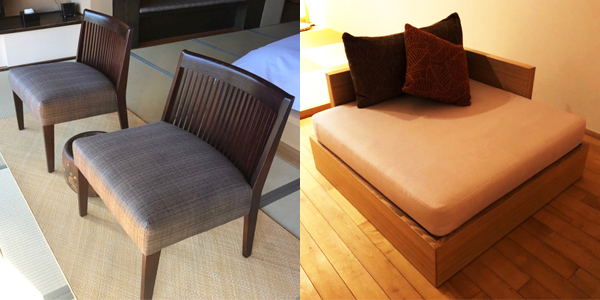 箱根旅館・ホテルの椅子とソファ類の張り替え