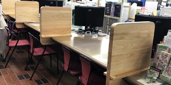 小田原市役所内の間伐材ヒノキ衝立(ついたて)を作製。