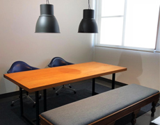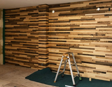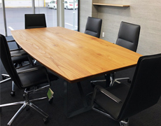 江部松商事様 間伐材モザイク壁と机を納品しました。