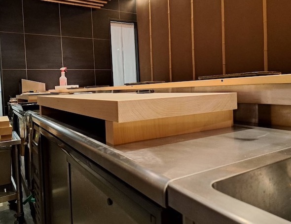 高級寿司店からのご依頼で、まな板を高くするためのスペーサー(台)を製作しました。