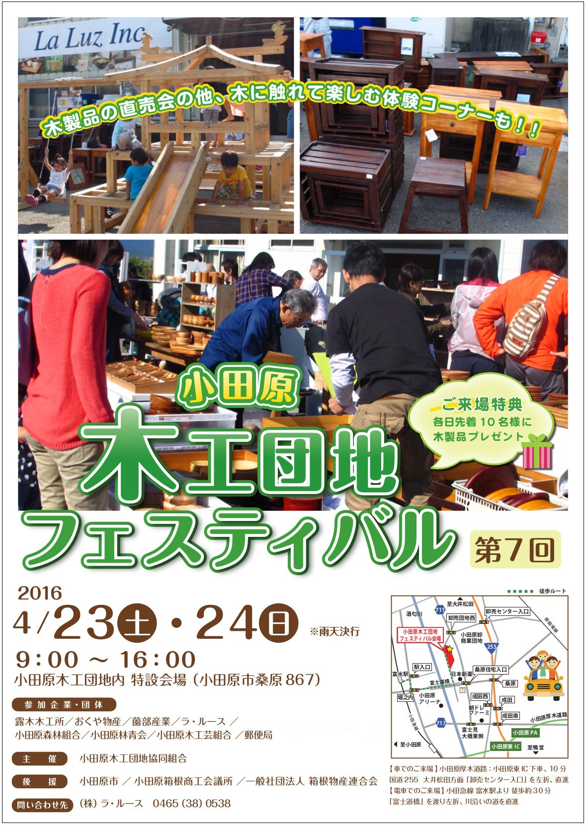 春・秋と年に二回開催されている木工団地フェスティバルですが、早いもので今回で7回目を迎えます!日時:2016年04月23日(土曜日)&24日(日曜日)開催時間:9:00~16:00※雨天決行場所:小田原木工団地内 特設会場(小田原市桑原867)