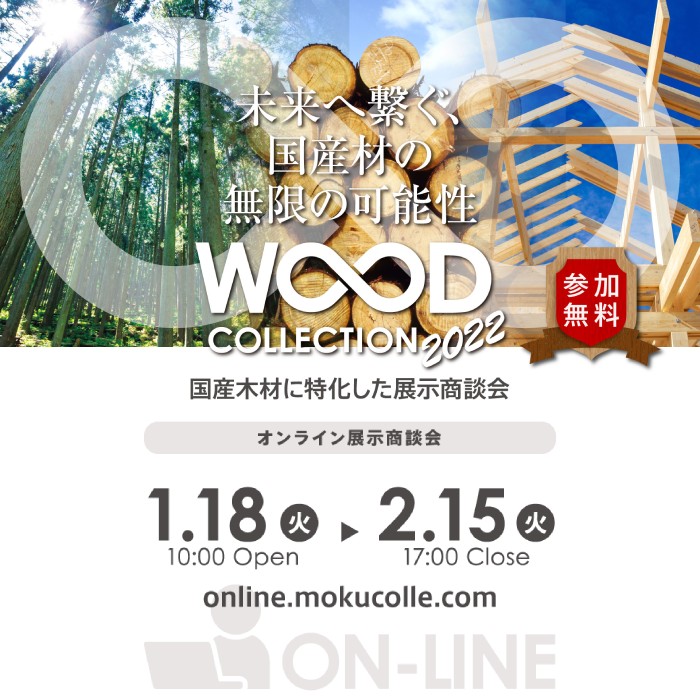 今回で6回目の開催となるモクコレは、商談マッチングを強化し、木材の商談が常に生まれる展示商談会へと進化いたします。今回はオンライン展示会として開催いたしますので、これまで来場いただけなかった方々も、ぜひお気軽にご参加ください。