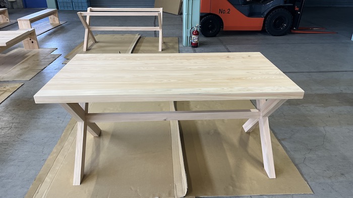 小田原市森林組合さまからのご依頼で、テーブル、ベンチ、ロングベンチを作らせていただきました。