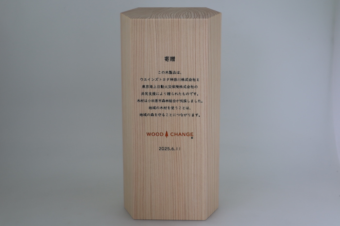 小田原市立富水小学校と町田小学校へ、小田原箱根産間伐材ヒノキ製の什器が寄贈されました。