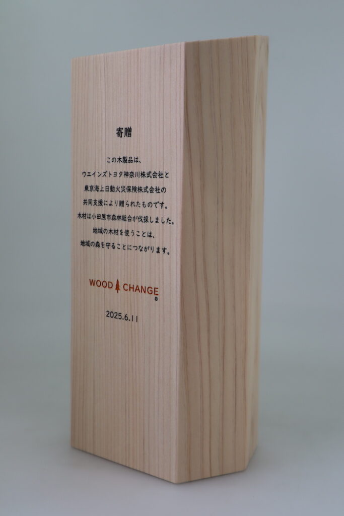 森林組合さまからは、寄贈記念の盾もご依頼いただきました。