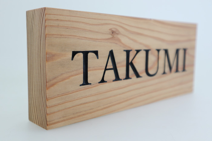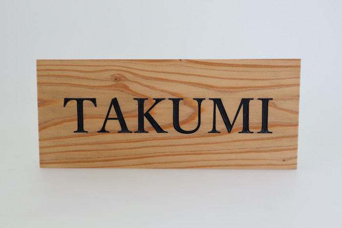 TAKUMI館で、スギの表札の注文をいただきました。