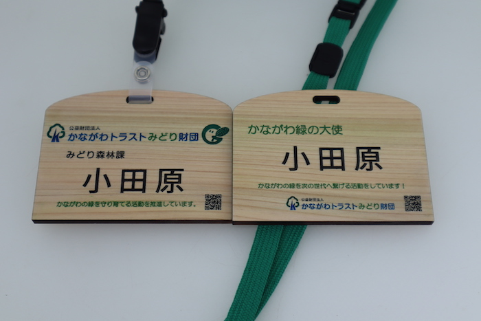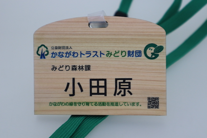 公益財団法人かながわトラストみどり財団様からのご依頼で、神奈川県産間伐材ヒノキを使ってネームタグを製作しました。