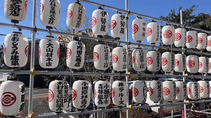 参道に、賑々しく飾られた提灯の様子がまた美しく。