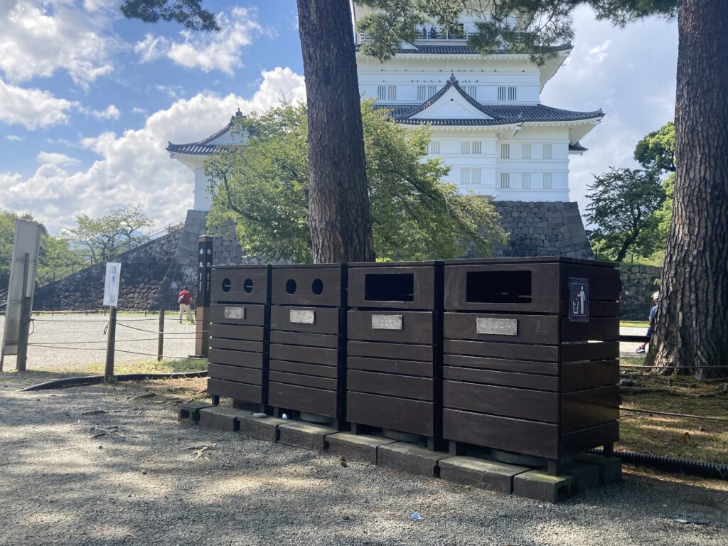 ほかにも本丸広場には、2016年に製作・納品した小田原産間伐材のサワラを使ったゴミ箱があります。