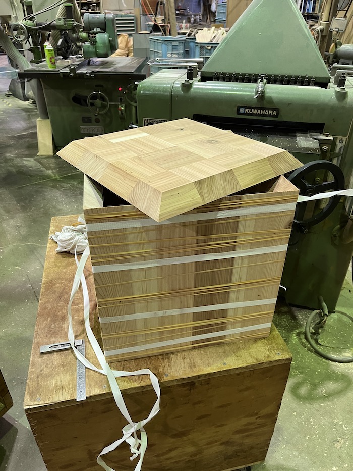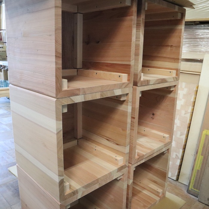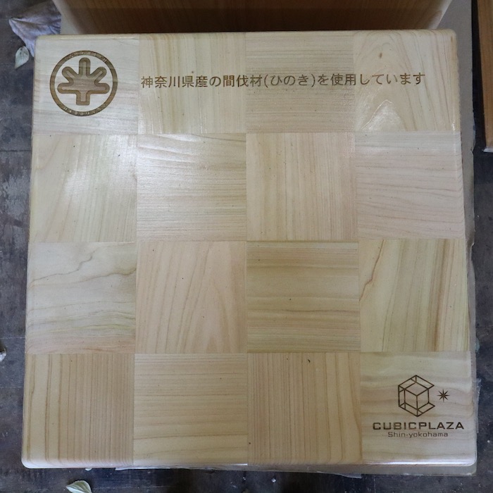 30㎝四方と40㎝四方の2タイプのキューブ型木製スツールを製作しました。