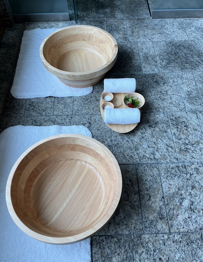 CONRAD TOKYO MizukiSpa様からのご注文で、間伐材ヒノキのフットバスを作らせていただきました。