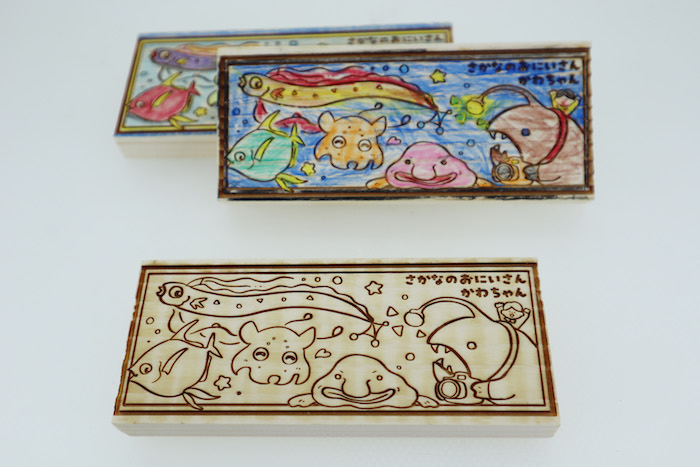 ともに、かまぼこ板ぬり絵のコーナーが設けられました。
