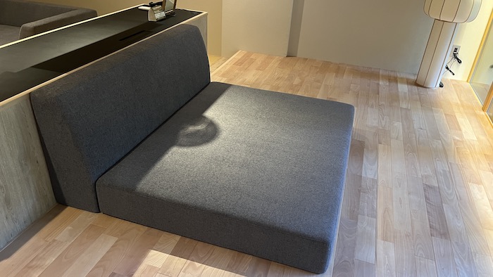 社長・職人さん・現場設置担当者など皆で話し合い、かなり硬めで寝転んでも気持ちが良い座り心地に仕上げました。