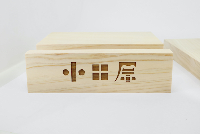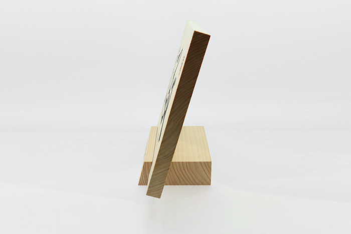 堤さんの揮毫による「敬」の字を、小田原箱根産間伐材ヒノキにレーザー印刷しました。