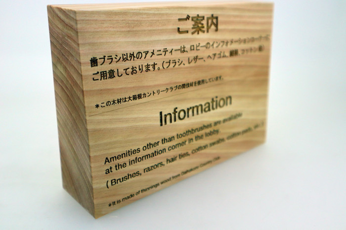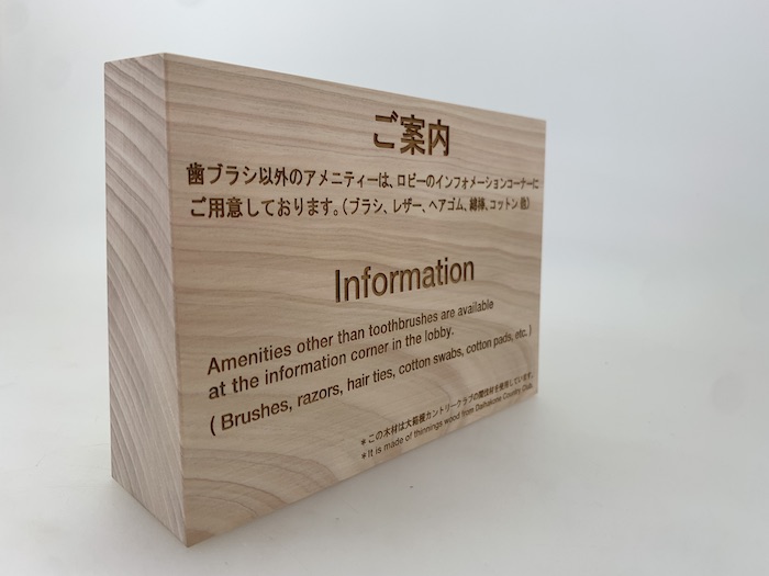 箱根仙石原プリンスホテル様からのご依頼で、お預かりしているヒノキを使いアメニティプレートを製作しました。