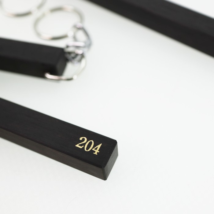 材の色が黒色で濃く、金文字でお部屋の番号が刻印されています。