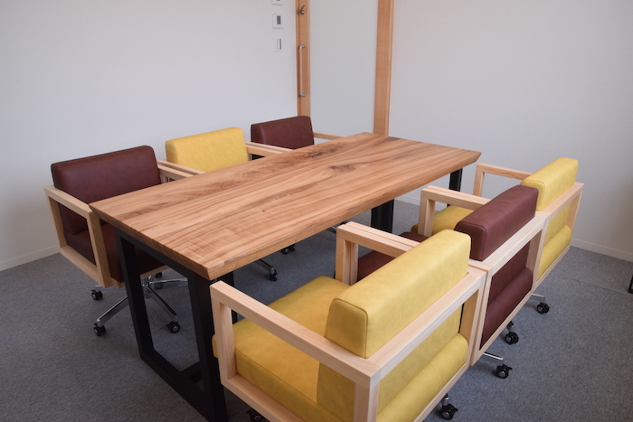 応接室にはクスで作ったテーブルを納めました。