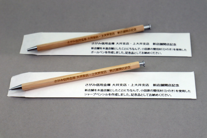 什器の一部のほかにオープン記念のノベルティーとして、店舗ご利用のお客さまに配布されたボールペン・シャーペンや、