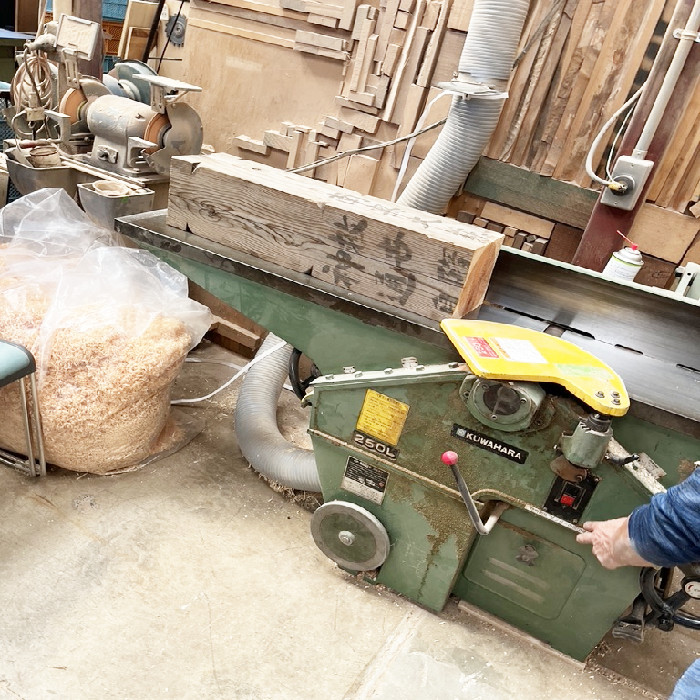 回向柱を製材して、紙に加工しやすい形状にしていきます。
