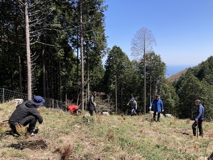 小田原市内の桜が満開になって見頃を迎えた4月中旬、小田原市内の財産区林で植林体験を行いました。