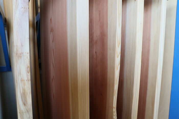 1枚1枚違う小田原・箱根産間伐材の表情を、ぜひ店舗で見てください。