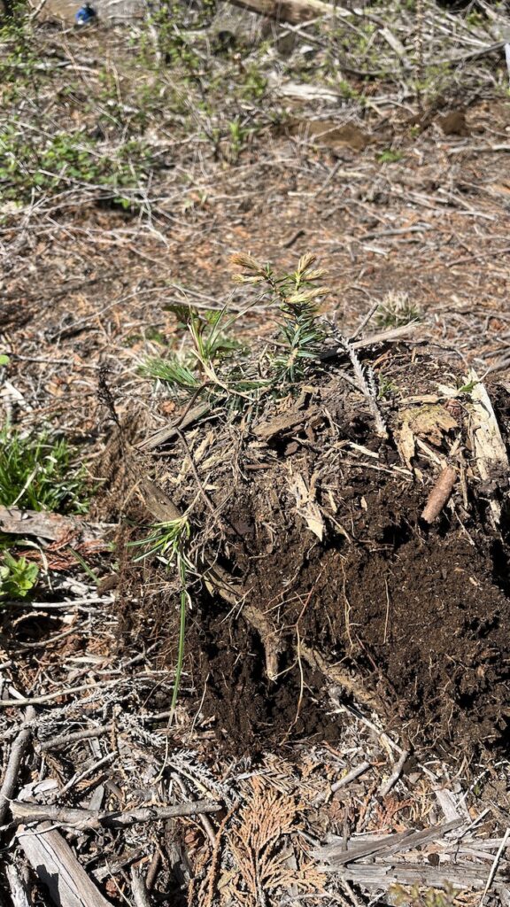 すでに成長したモミのそばではないものの、風に乗ってタネが飛ぶのを確認し、大きめの苗が用意できました。