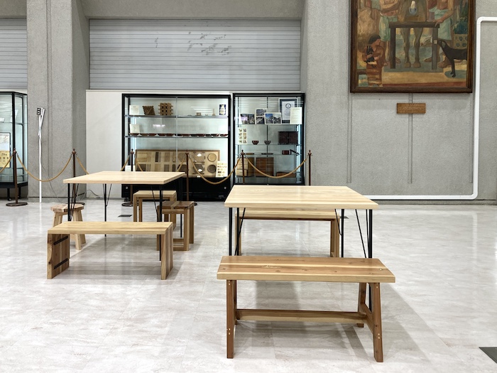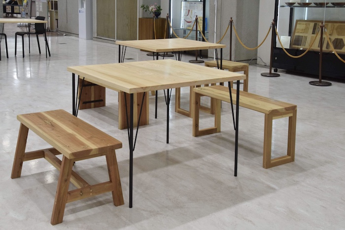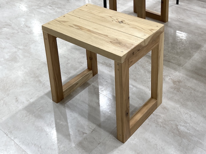 テーブルの雰囲気に合わせて、ヒノキの端材を使って作られたそうです。