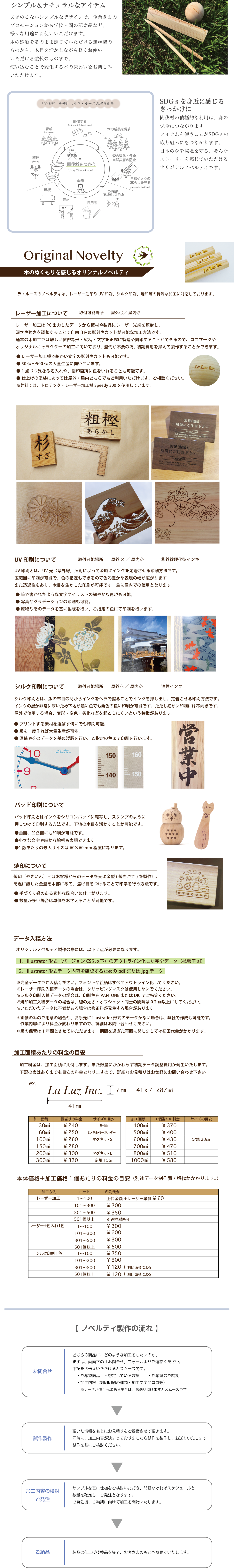 ラ・ルースのノベルティはすべて小田原箱根産の間伐材ひのきを使用しています。