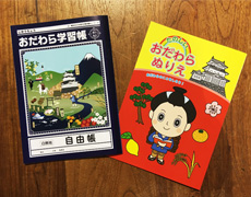 可愛い絵柄と共におだわらのことを描いた塗り絵では