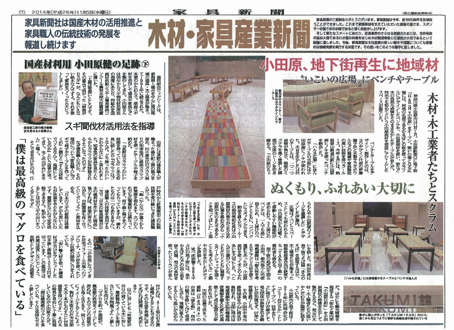 家具新聞【2014.11.05】にHaRuNe小田原の什器&TAKUMI館がピックアップされました。