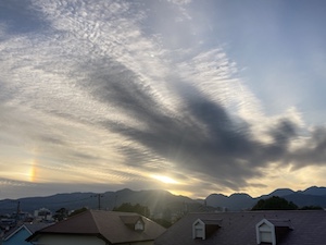 夕方小田原に戻ってきて箱根の山々を見ていたら、彩雲が出ていました。