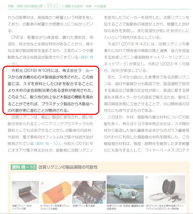 食洗機対応塗料に関して 令和元年度森林・林業白書に記載されました。