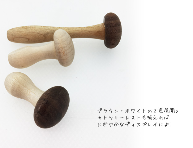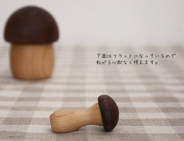 木の素材感がたっぷり感じられる、ぷっくりかわいい、きのこシリーズ。